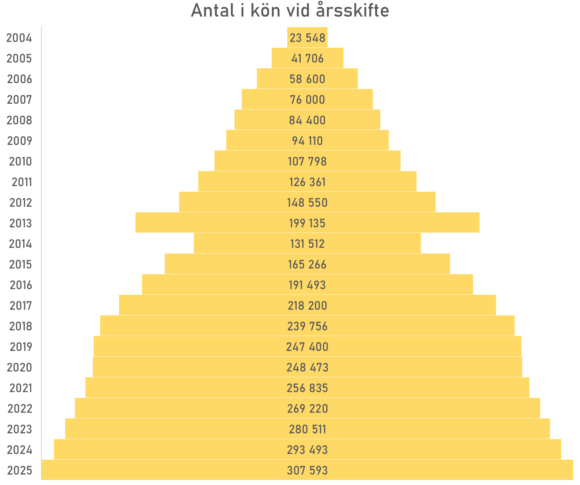 Antalet bostadssökande på boplats.se | 2014 började Boplats ta ut en årsavgift på hundra kronor, därav den kraftiga minskingen av bostadssökande med konto på boplats.se.