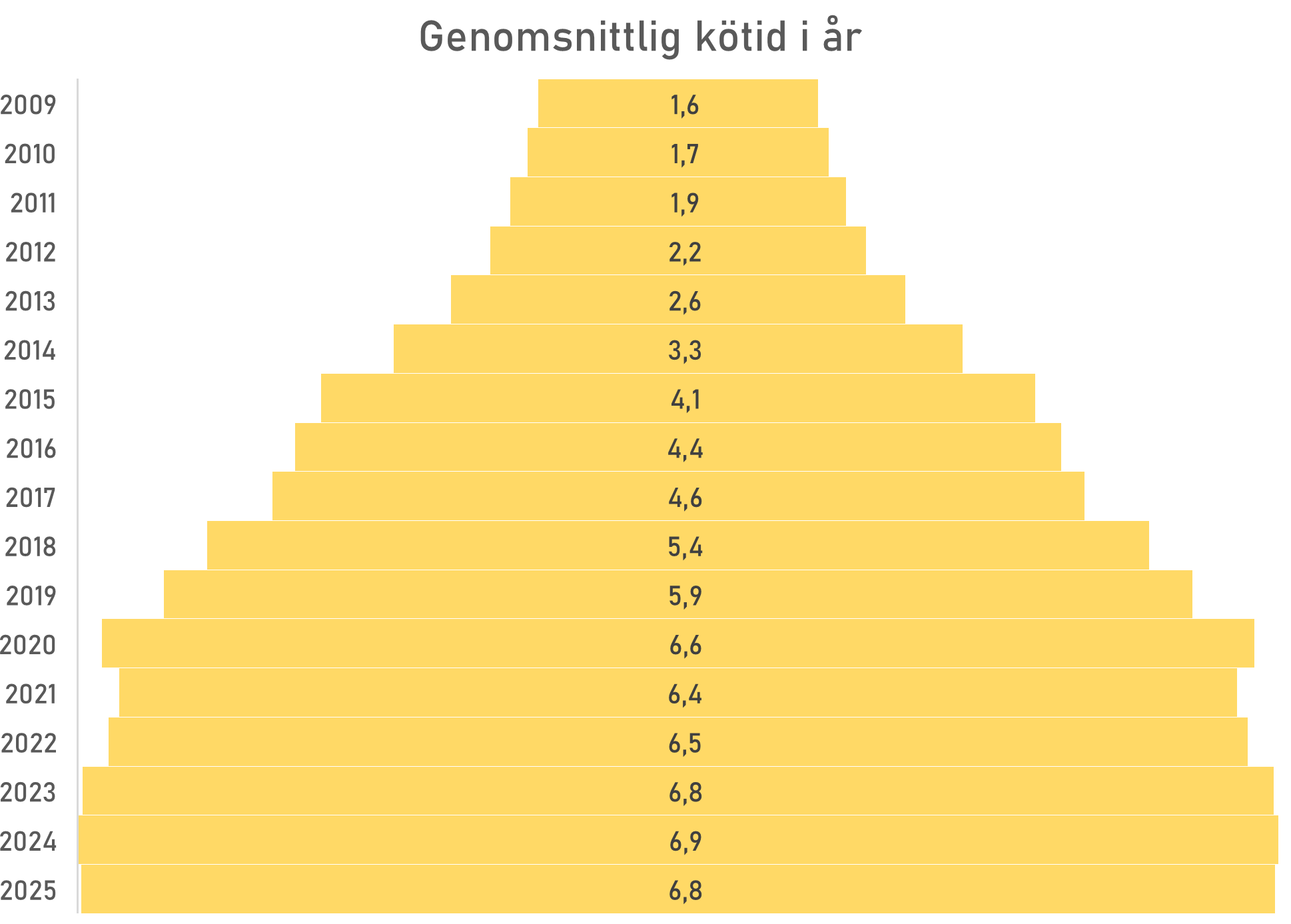 Kötiden började att räknas 2004, men det finns ingen data på genomsnitt för de tidiga åren. I början spelade inte kötid någon större roll för vem som fick lägenheten.