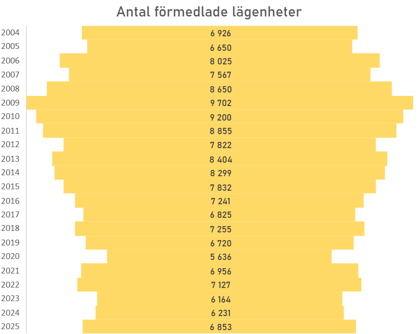 Antal förmedlade lägenheter | Antalet förmedlade lägenheter sedan starten.
